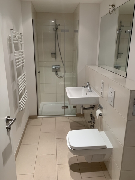 - modern gefliestes Badezimmer mit Dusche