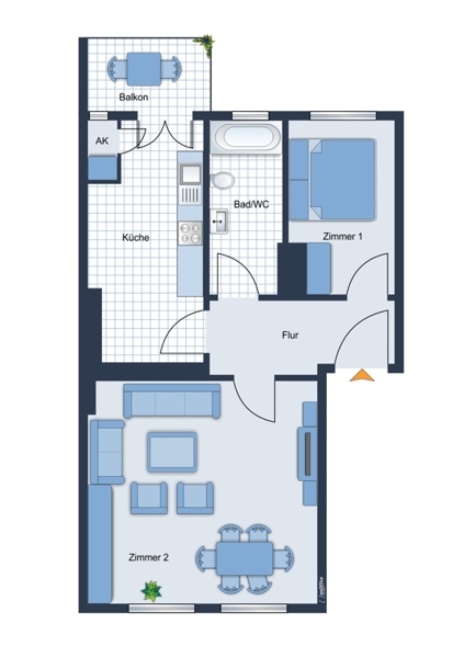 - alle Räume sind vom Flur aus separat begehbar